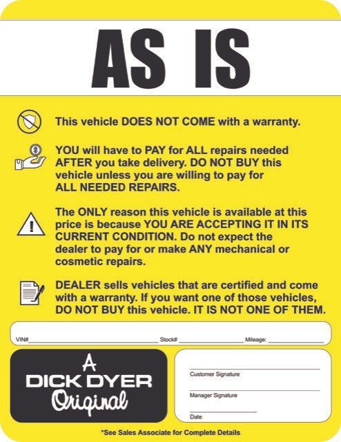 Sold Completely AS-IS: This vehicle has been safety-inspected, and no reconditioning or mechanical repairs have been performed by the dealership.